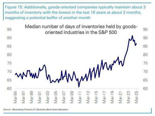 ... which according to Deutsche Bank has led to precisely the opposite outcome than the one MSNBC and CNN have been blasting: there is excess inventory in the supply channel, enough in fact to last weeks if not months, assuming a full-blown collapse in global trade, which of course would never happen absent a covid-like shock.