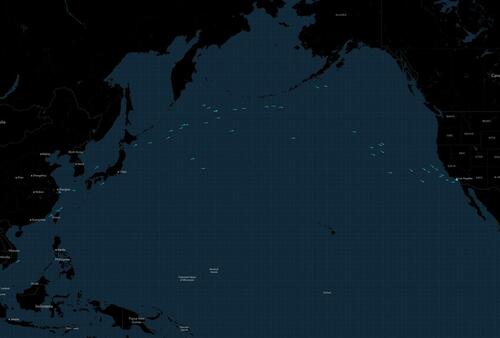 Only this attempt to spark panic (while evoking the covid pandemic for obvious reasons) is also dead wrong: first, consider that there are currently 52 ships transiting the Pacific from China to SoCal, in line with historic numbers: the trip takes 20 days which means 2.6 ships sailing each day or one ship every 9 to 10 hours. So a 12 hour period is not unusual. And, as Sal Mercogliano points out, while no ships may have set sail for California on Friday, a quick look at Marine Traffic shows that three ships – Cosco Africa, Ever Safety and Ever Mild – are all leaving China for SoCal this weekend. So much for that “startling sight.”