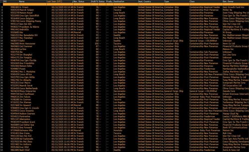According to Bloomberg, there are no less than 52 cargo ships currently sailing from China to California and the West Coast, with the full list shown below.