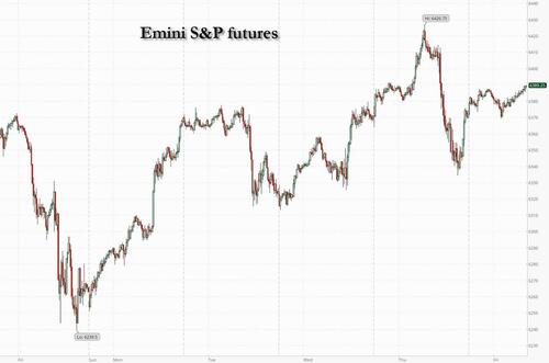 In premarket trading, Mag 7 names are mostly higher with the exception of TSL, whose shares dropped 0.2% on news it is disbanding its Dojo team and its leader will leave the company, according to people familiar with the matter, upending the automaker’s effort to build an in-house supercomputer for developing driverless-vehicle technology. Shares are down 0.2%. Here are the others (Nvidia +0.7%, Apple +0.6%, Amazon +0.3%, Alphabet +0.2%, Microsoft +0.3%, Meta Platforms +0.2%).