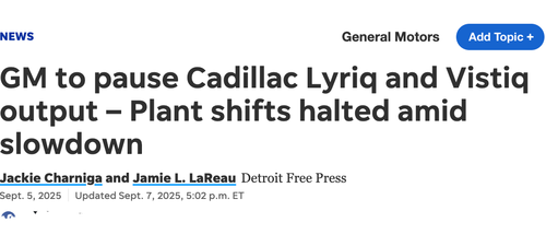 The selling comes as the Detroit Free Press announced in recent days that GM's Spring Hill Assembly plant in Tennessee will experience several weeks of downtime. The plant makes the Cadillac Lyriq SUV and Vistiq.