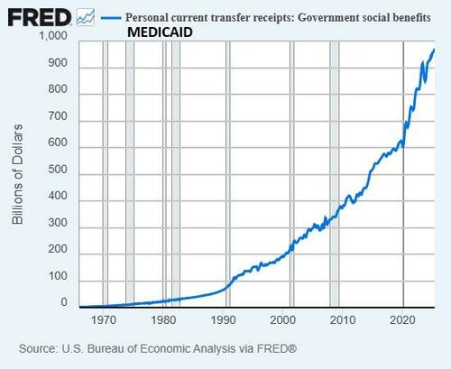 And Medicaid: healthcare has soared from 5% of GDP to almost 20%. “Unlimited free money” tends to do that…