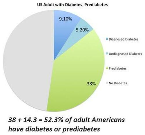 Fast-forward to today, and the average lifespan is 80 (with millions of elderly living a decade longer) and 3/4 of adult Americans are at risk of lifestyle diseases / metabolic disorders due to an unhealthy diet and poor fitness. Over half of Americans are diabetic or prediabetic.