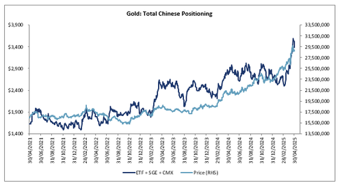 Just one week ago, China seemingly couldn't get enough of gold, and the price of spot briefly touched a record $3500 as a result of, among other things, staggering inflows into Chinese gold ETFs such as the Huaan Yifu, Bosera and Guotai gold ETFs.
