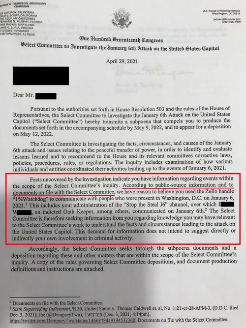 I had no idea what Zello was. I had no idea who 1% watchdog might be. I had never heard of “Stop the Steal J6” or associated “channel.” I had never heard of the person redacted, and I had never communicated with any Oath Keeper, any communication system, or platform, or anyone or anything – nothing – that is outlined in that subpoena.
