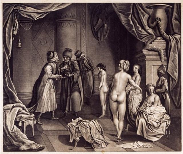 Image: Muslim humiliation of female slaves in the 18th century by Charles Boulay. Public domain.