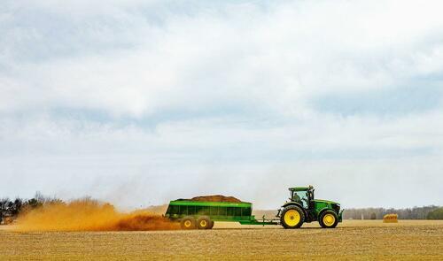 A tractor spreads fertilizer on a field at a farm in Church Hill, Md., on March 20, 2025. Biosolids, or treated sewage sludge, are widely used in the United States as a soil amendment and fertilizer. But rural landowners and farmers are increasingly concerned about foul odors, soil contamination, health risks, and stormwater runoff carrying potentially dangerous chemicals into waterways. Jim Watson/AFP via Getty Images