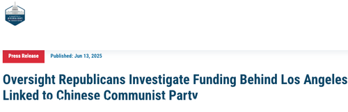 It has been reported that Mr. Singham is ‘the main backer behind’ the Party for Socialism and Liberation (PSL), which has organized nationwide protests, including the Los Angeles riots. According to the New York Times, Mr. Singham, who resides in the People’s Republic of China, has a long track record of assisting far-left entities, such as Code Pink, that oppose U.S. interests and support U.S. adversaries,” House Republicans wrote in the letter.