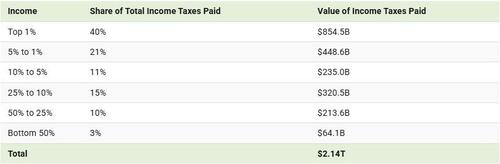 Americans earning over $663,000, considered the top 1%, paid $854.5 billion in income taxes, the highest share overall.