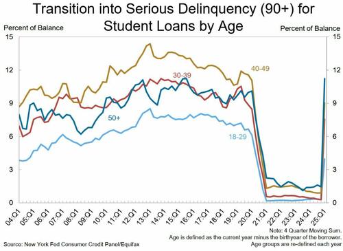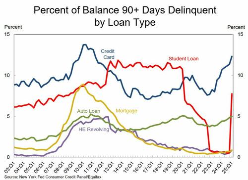 While the payments were resumed, policymakers extended a one-year ramp-up period that shielded borrowers' missed payments from being reported to credit bureaus. This extension expired in October 2024, with delinquencies starting to hit the first quarter of 2025.