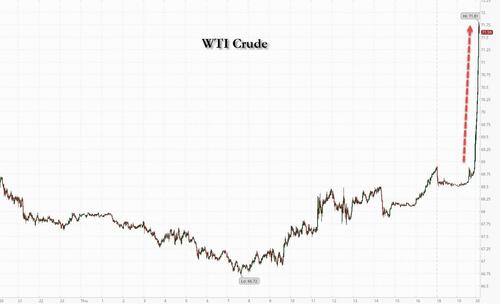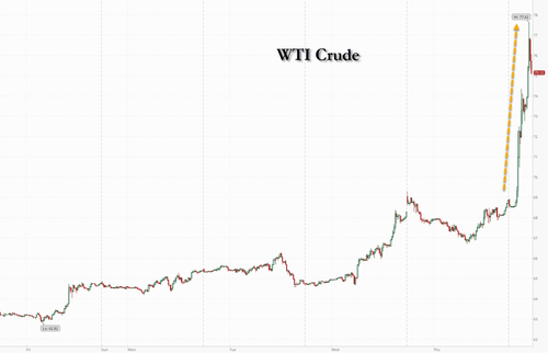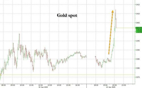 Futures and yields are tumbling, and gold and oil are surging following reports of successive explosions in Iran as a result of what Al Arabiya reports are Israeli airstrikes; Axios has confirmed that the Israeli Air Force conducted a strike in Iran, “attacking its biggest and best-armed adversary, without clear backing from the U.S.” It was not immediately clear who Israel is targeting.