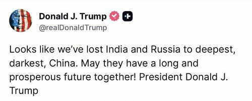 "Looks like we’ve lost India and Russia to deepest, darkest, China. May they have a long and prosperous future together!" Trump wrote in a social media, with an accompanying a photo of the three leaders together at Xi's summit in China.