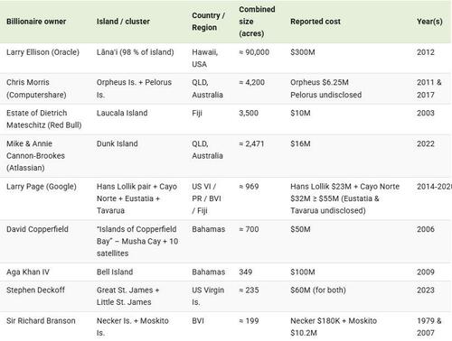 From Coastal Australia to the turquoise waters of Fiji, billionaires have snapped up private islands as the ultimate status symbols.
