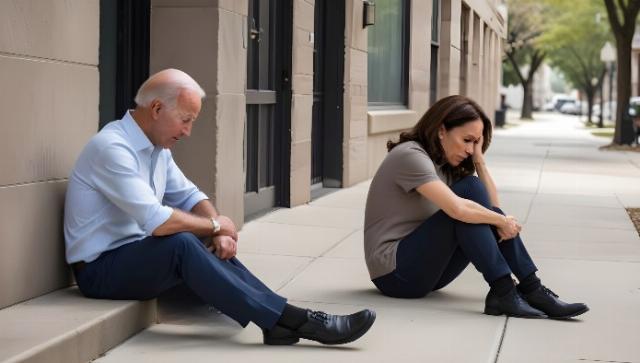 The image is the best AI could do when it came to showing Joe Biden and Kamala Harris kicked to the curb. AI came up with the clown shoes by itself, and they seem appropriate.