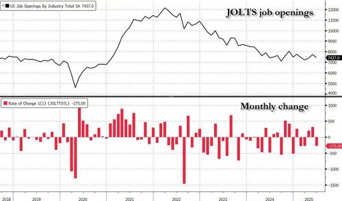 A testament to (what's left of DOGE), is that Federal job openings remained near the post-covid cycle lows, rising just 2k from 94K to 96K.