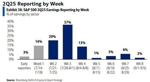 It's certainly busier on the earnings side as we start to see Q2 earnings get fleshed out a little more this week with 135 S&P 500 and 189 Stoxx 600 companies reporting. Two of the Magnificent 7, Alphabet and Tesla, will report on Wednesday. Other tech firms releasing results this week include IBM, ServiceNow and Intel. Defence firms including RTX, Lockheed Martin and Northrop Grumman also report.