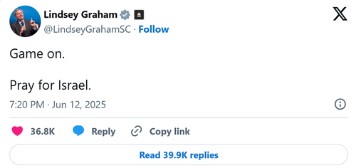 Shortly after the start of the Israeli attack on Iranian nuclear facilities, military bases, and residential buildings early on Friday morning, Senator Lindsey Graham (R-SC) posted on X, “Game on. Pray for Israel.”
