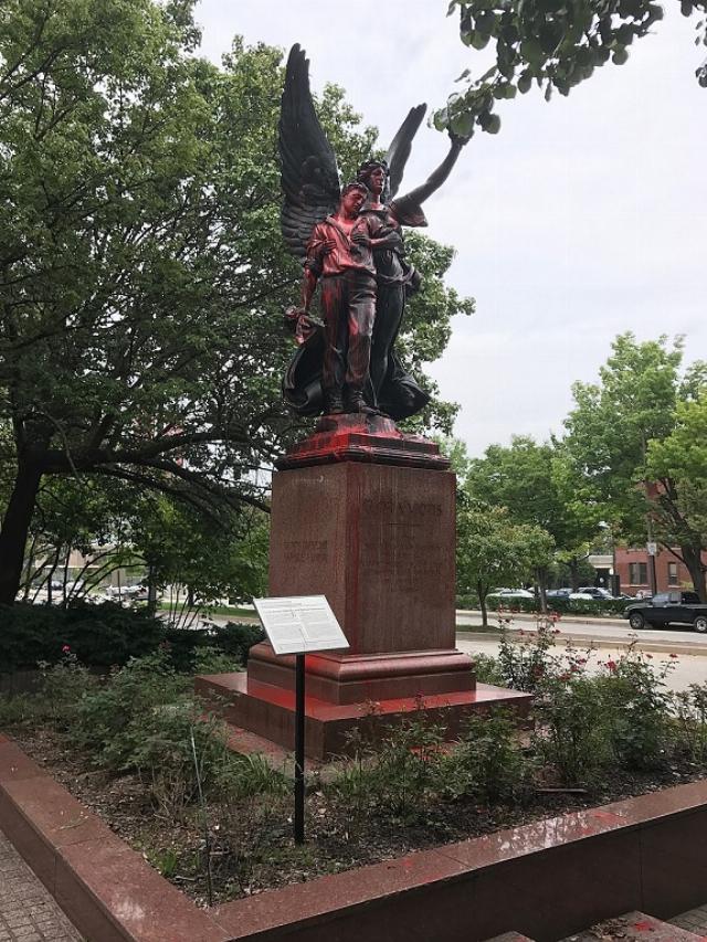 Other statues lent to Monuments include Richmond’s Valentine Museum paint-splattered Jefferson Davis Monument (1907) by Edward V. Valentine; and Baltimore’s “Soldiers and Sailors Monument” by Frederick Wellington Ruckstuhl (1903), removed in the aftermath of the 2015 Charleston church shooting event.