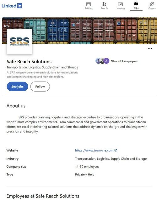 SRS makes no secret of its connection to Gaza on LinkedIn. It posted a glowing article from ABC News in April, titled, “How a team of 'suburban dads' secured a key checkpoint in Gaza's 'death corridor'".