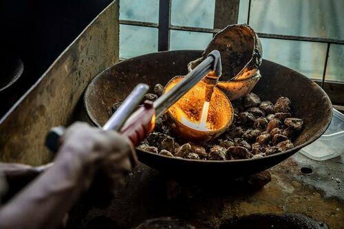 A man melts pure gold fragments coming from different mines in the region, at a gold market in Geita, Tanzania, on May 28, 2022. Luis Tato/AFP via Getty Images