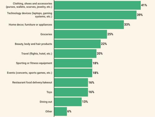 The top two categories of BNPL purchases are clothing, shoes and accessories (41% of BNPL users) followed by technology devices (39%). However, there's been a surge in people who've used BNPL for groceries -- 25% versus 14% last year. A whopping one-third of Gen Z BNPL-tappers say they've used the financing for groceries. Similarly, 16% of users have tapped BNPL for food delivery or takeout.
