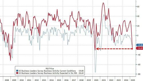 The survey’s headline business activity index came in at -19.8, its lowest level in more than a year, with 6-mnth forward expectations plunging to the weakest since COVID…
