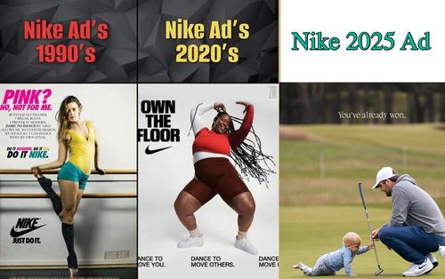 Nike's ads in the 1990s focused on fitness and athleticism. Then came the woke era of the past decade, promoting obesity and the whole 'body positivity.' However, by 2025, Nike's marketing team abruptly abandoned the woke agenda, recognizing that the Overton Window of what is socially acceptable to Zoomers and Millennials had shifted back toward wholesome, family-oriented messaging.