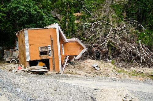 Near the Bat Cave residential area, a ticket booth remained on its side, while the stately homes further upriver lay in ruins or exhibited heavy damage. Many homes that survived the torrent were no longer safe for habitation.
