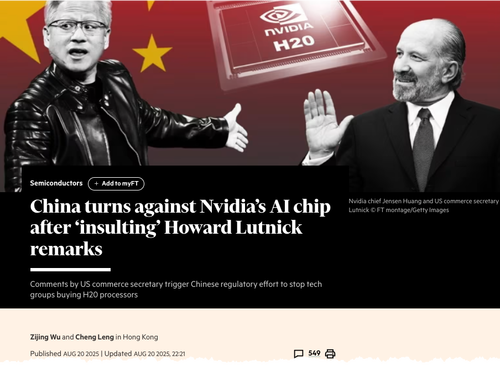 Recall that on July 15, U.S. Commerce Secretary Howard Lutnick told CNBC, “We don’t sell them our best stuff, not our second-best stuff, not even our third-best,” referring to the H20 chips. Chinese officials reportedly viewed the remark as “insulting.”