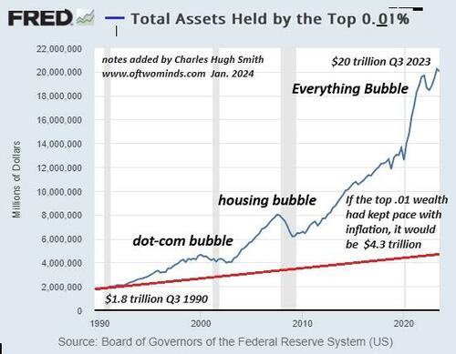 But all bubbles pop, and there are no tricks left to fund both the greed of the few and the needs of the many. The top 0.01% own five times as much as the bottom 50%--170 million Americans. That's some very pretty entropy dressed up as stability.
