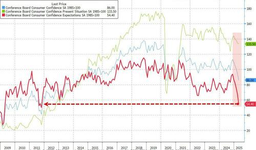 The broader pessimism from QSRs and consumer-facing companies mirrors the sharp downturn in the Conference Board’s confidence index, which just sank to a 14-year low.