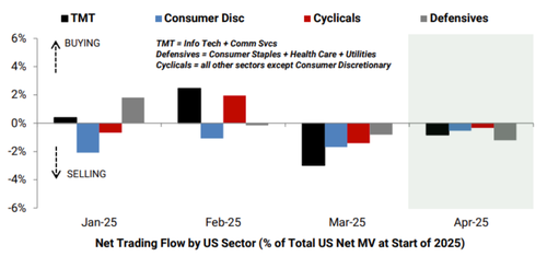 In markets, Goldman analyst Nelson Armbrust said consumer discretionary stocks were “net sold for a fourth straight month, driven by short sales outpacing long buys ~5 to 1.”