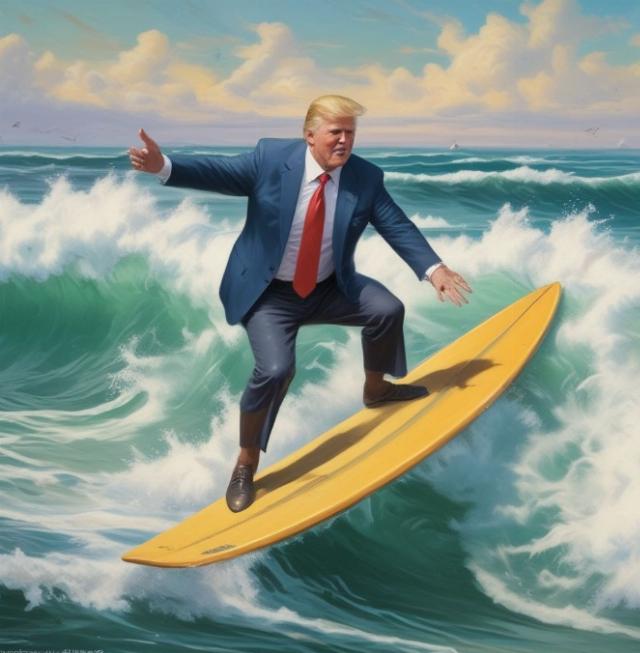 As Harris proceeds on her honeymoon cruise a lone figure rises above the tide. Donald Trump surfs blithely atop the monolithic tide. Can he maintain his balance, or will he slip off the board? As Trump surfs past Kamala and her henchmen he waves at them or was that a less friendly gesture? If Trump can carefully manage this monolithic tide, he just might ride a red wave to victory on November 5th.