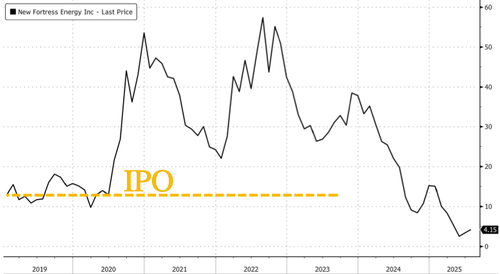 Weeks after New Fortress Energy rallied on news of a temporary contract extension for LNG supply to Puerto Rico, Bloomberg now reports the island has idled temporary power plants after the company abruptly halted a critical gas shipment, raising the risk of power outages at the peak of summer demand.