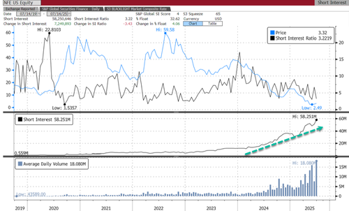 According to the latest Bloomberg data, the stock is heavily shorted, with about 58 million shares sold short, representing about 32.5% of the float.
