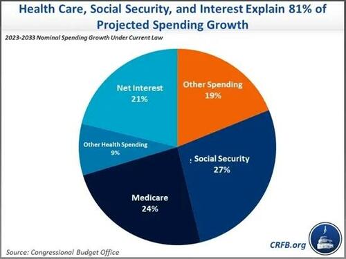 Most of the future expansion of Federal spending and debt is in programs for the older generations and rising interest payments on the expanding debt to pay for these programs.