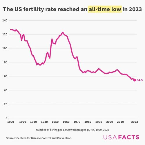 By 2023, that rate had fallen to 54.5—less than half the mid-century high. The sharpest declines came post-1960s, but the downward trend continues in the modern era.