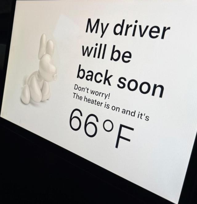 Tesla is also pet-friendly! Did you know it has a dog mode? You can leave your dog in heated or air-conditioned comfort, and the big display screen in the front lets passers-by know your pup is safe and comfortable. You can even check on your dog remotely via the interior camera view on your cell phone app and talk to your dog via the car’s interior speakers. (Note: You can’t see it in the still picture but the balloon dog on the screen moves and wags his tail. It’s very cute.)