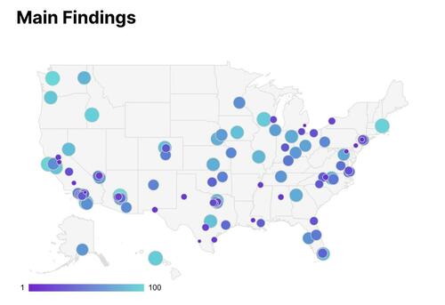 Newark, New Jersey and Philadelphia, Pennsylvania round out the top five. Newark had the second-highest tradeline delinquency rate at 16.00% but slightly lower total loan delinquency at 17.40%. Philadelphia, meanwhile, had a similar tradeline delinquency rate (15.57%) but lower unpaid balances (13.95%), ranking it fifth.