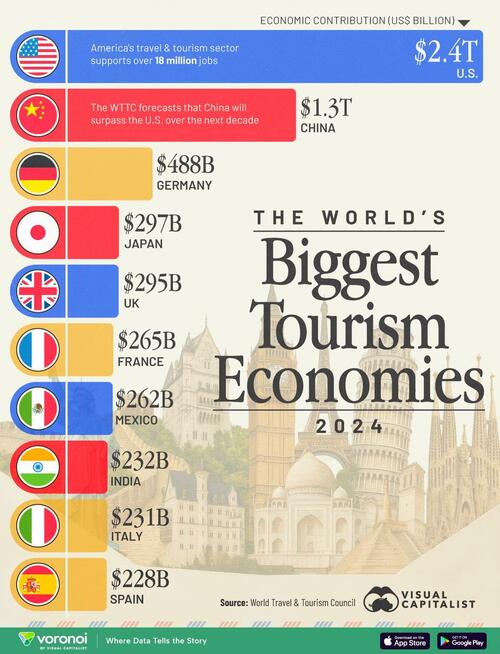This chart, via Visual Capitalist's Marcus Lu, highlights the top 10 countries by the size of their tourism economies, encompassing everything from hotel stays and flights, to attractions and services.