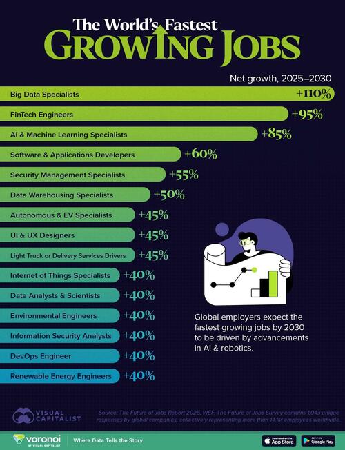 To learn more about this trend, Visual Capitalist's Marcus Lu visualized the 15 fastest growing jobs projected from 2025 to 2030, drawing on a global survey of employers.