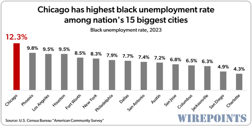 Unsurprisingly, jobs are a problem. At 12.3%, Chicago’s black unemployment rate was the highest among the nation’s 15 biggest cities, according to the latest data from the U.S. Census Bureau.