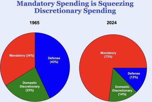 Wrangling over the budget isn’t going to save us. Congressional debates tend to center on discretionary spending — outlays that require a vote by Congress during the appropriations process. However, America’s steady march to insolvency is driven by so-called mandatory spending, which is hardwired by previously-enacted laws.