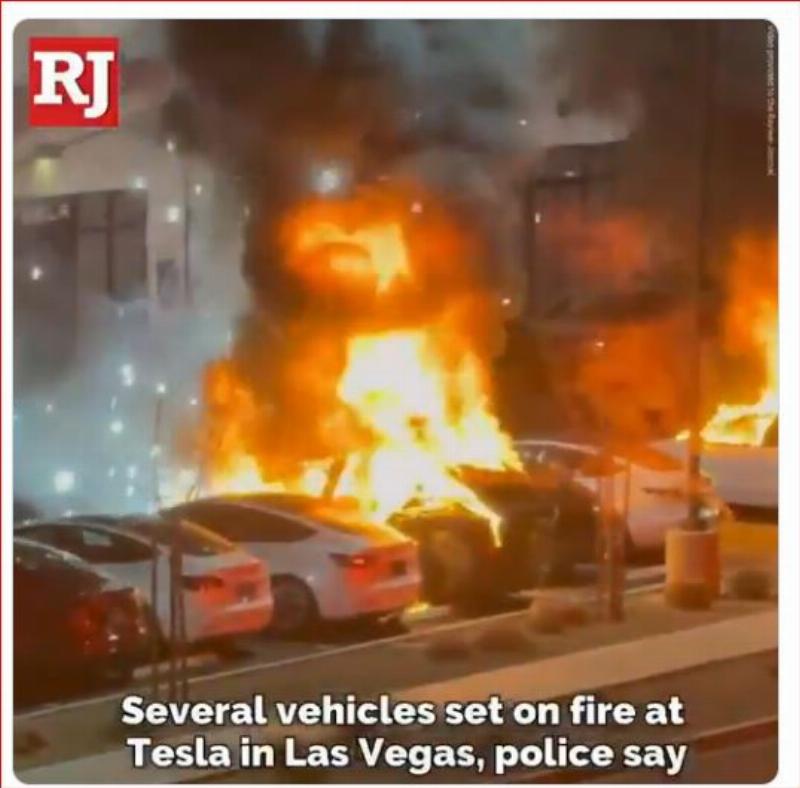 Photo Credit:Arson fire at Tesla dealership in Las Vegas