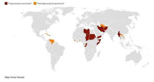 The administration justified the restrictions in a number of ways. Several of the countries, it said, had unacceptably high temporary visa overstay rates, necessitating a ban. Others, it said, couldn’t be relied upon to issue valid passports to verify a person’s identity. Haiti, the only country in the Western Hemisphere to face a complete ban, was included because “hundreds of thousands of illegal Haitian aliens flooded into the U.S. during the Biden administration,” the White House said.