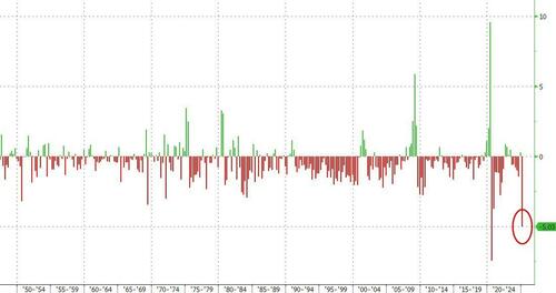 • Government spending was a negative -0.25%, the first negative print for Joe Biden's favorite "plug" to push GDP higher since 2022.