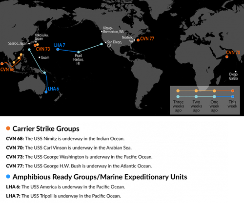 Currently, the USS Carl Vinson is already positioned in the Arabian Sea, while the Navy has also lately confirmed deployment of the carrier USS Gerald R. Ford to the Mediterranean, presumably as 'back-up' - though that mission had long been shechuled.