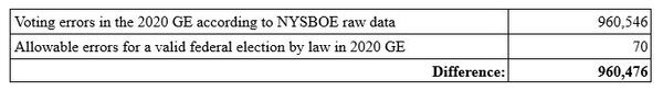 Was New York’s 2020 general election valid and certifiable, without investigating these factual anomalies? With 8.6 million votes counted, that election was allowed 70 ballots in error.