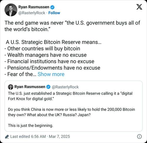 An official strategic reserve may also embolden others in the US, like the states and/or long term pension money.