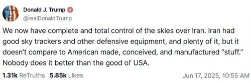 TRUMP SAYS ‘WE‘ NOW HAVE ‘TOTAL CONTROL’ OF SKIES OVER IRAN
